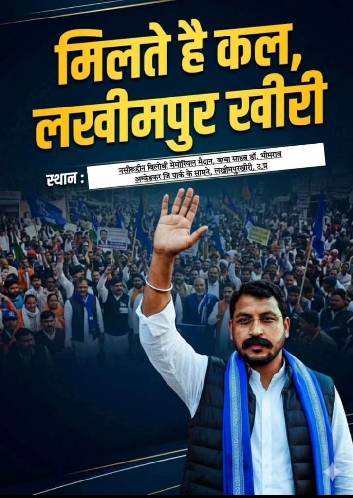 29 मार्च 2026 को लखीमपुर पहुंचे चन्द्रशेखर लाखों की संख्या में पहुंचे लोग चन्द्रशेखर ने बीजेपी पर तीखा प्रहार करते हुए कहा कि मौजूदा सरकार में दलितों मुस्लिम और गरीब जनता परेशान है और शिक्षा रोजगार और कानून व्यवस्था पर उठाया सावल//